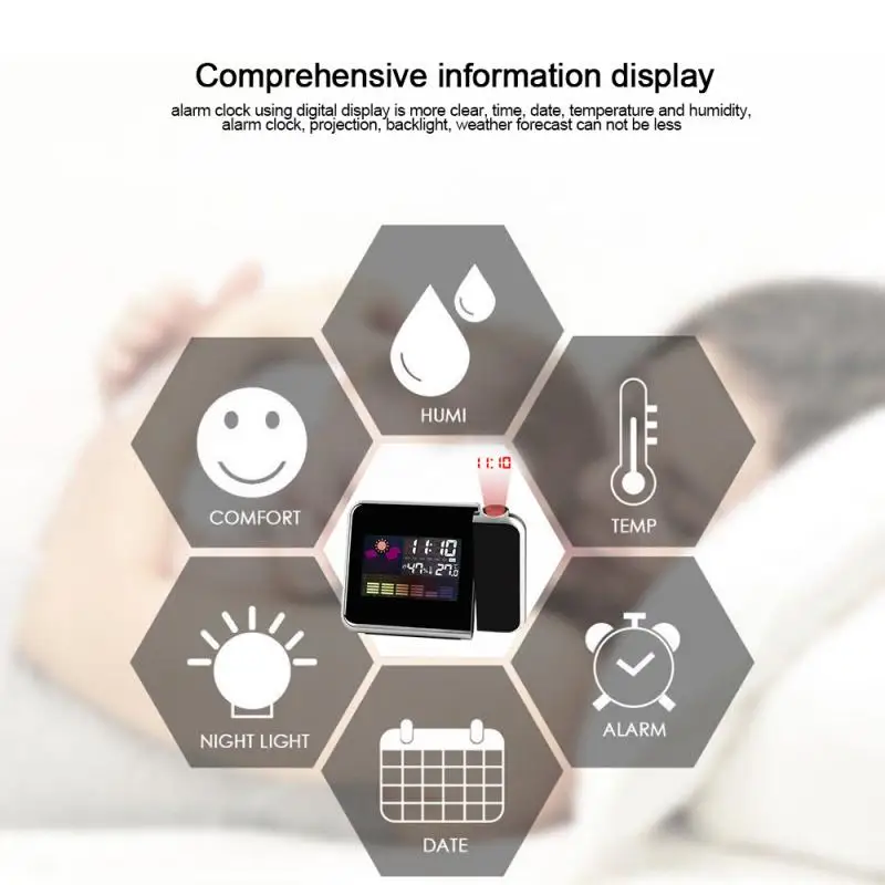 Get all the information you need to get through your day the second you wake up! This clock has a full color screen that displays time, temp, humidity and projects the time onto any wall or ceiling. It also has an alarm function so you never miss a beat. Runs on either 2 AAA battery (not included) .
