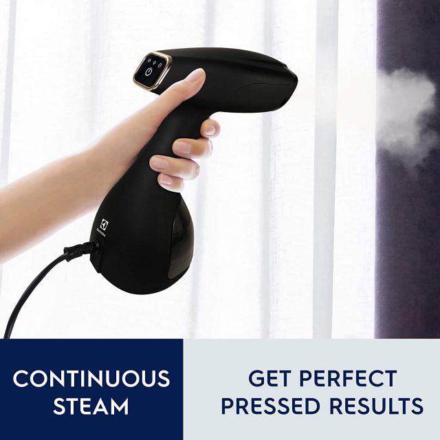 The Electrolux Handheld Steamer removes wrinkles from clothing and refreshes fabrics in no time. It has a quick heat up time of just 30 seconds with 1500W power and its 300ml tank provides 18 minutes of continuous steam to ensure quick and efficient steaming for you to look the best in under 5 minutes. It includes an extended 8-Foot power cord which allows you to walk around your house steaming any surfaces you would like to refresh or sanitize. The electromagnetic pump steam technology does not allow leaking and spilling it will ensure you that your delicate clothing will not get ruined from the water. Included with the Electrolux Steamer, a fabric brush helps take out the creases on the clothes, lint brush to remove lint, and hair found on garments. It also comes with a ceramic sole plate and steam nozzle that protects the delicate fabrics. The Electrolux handheld steamer puts the power of steam into a lightweight appliance for quick, everyday use, keeping your fabrics wrinkle-free and household steam fresh.