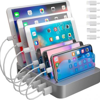 Hercules Tuff Charging Station for Multiple Devices, with 6 USB Fast Ports and 6 Short Mixed USB Cables Included for Cell Phones, Smart Phones, Tablets, and Other Electronics