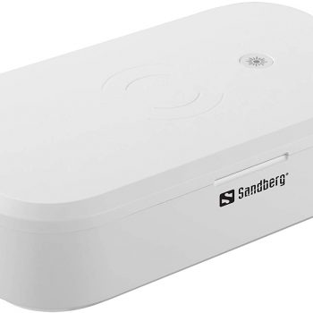 Sandberg (470-31) USB UV Sterilizer Rechargeable with Built-in 10W Qi Compatible Wireless Charger, 360° UV Disinfection, Kills up to 99% Bacteria/Viruses