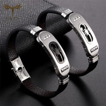 Punk Scorpion Bracelet Mens Leather Bracelets High Quality Stainless Steel Leather Jewelry for Men Accessory Rock Male Bangles
